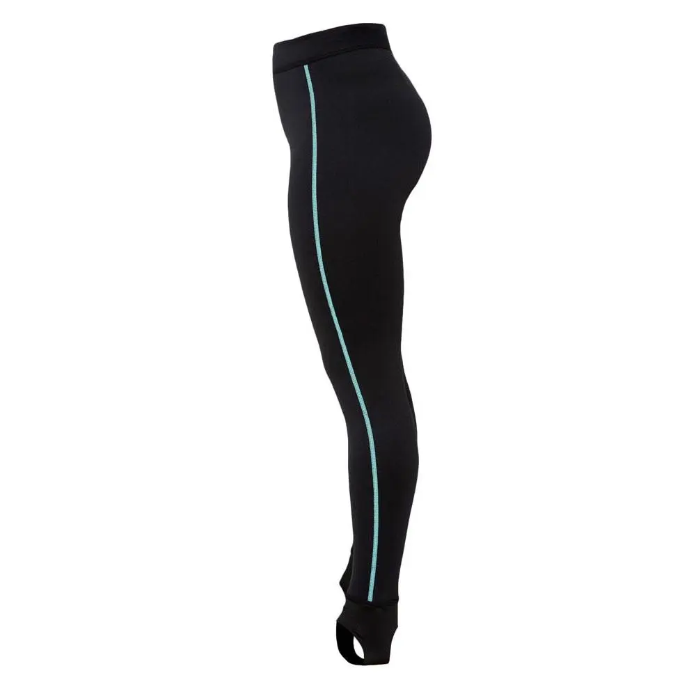 – Spandex stirrups keep pants in place while donning mid layer or drysuit