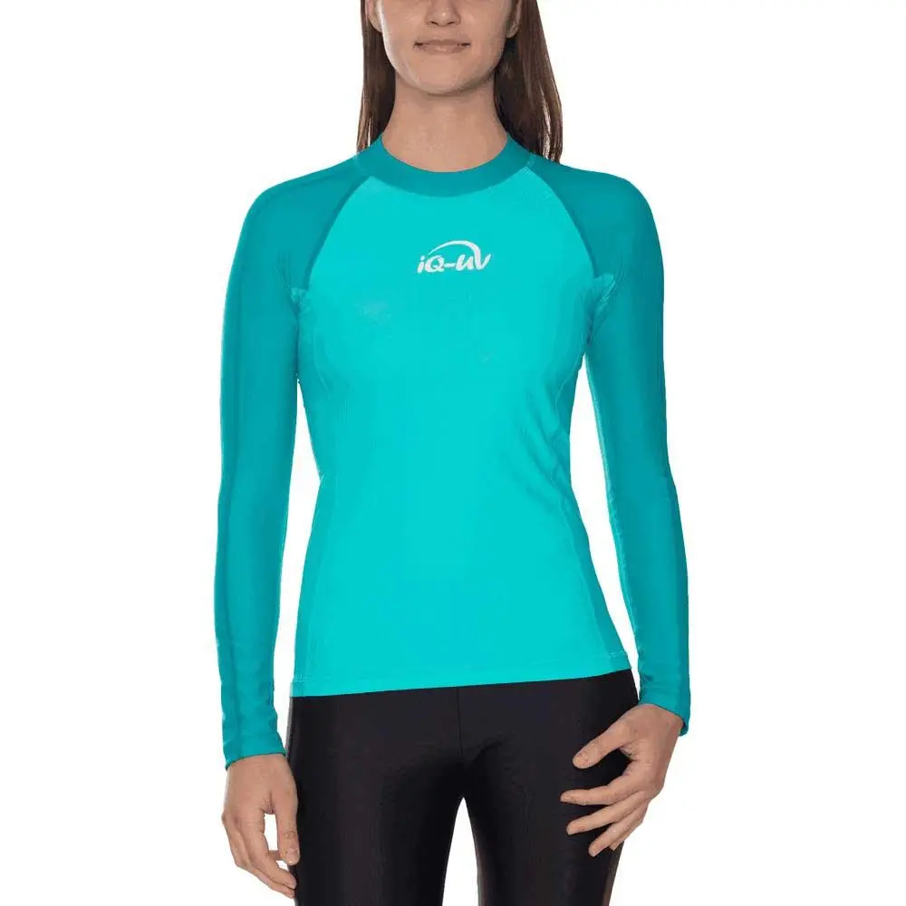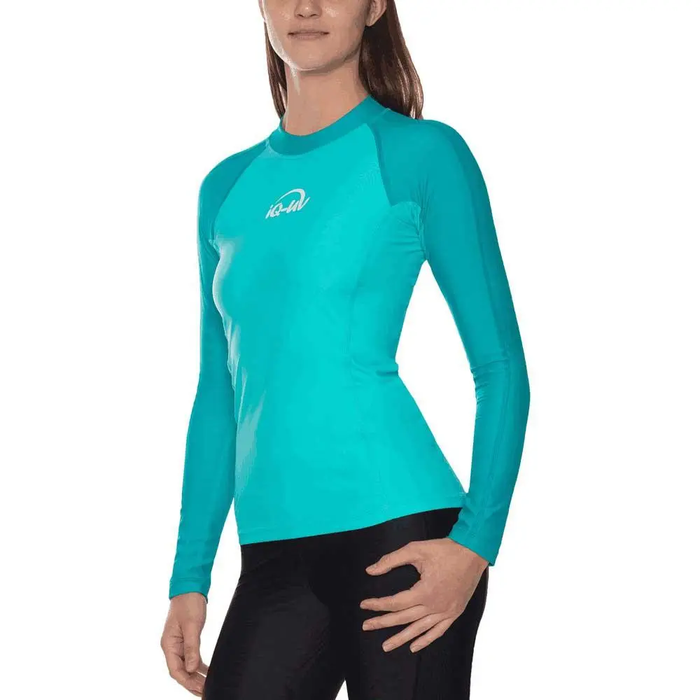 The two-tone UV-Shirt convinces not only with a sun protection factor of 300, but also by the close fitting and the practical handling. The breathable and quick-drying top made of elastic material fits perfectly on the body and offers optimal freedom of movement. Whether it´s water sports on the beach or hiking in the mountains – the two-color UV-shirt for women is perfect for extensive sports activities in the sun.