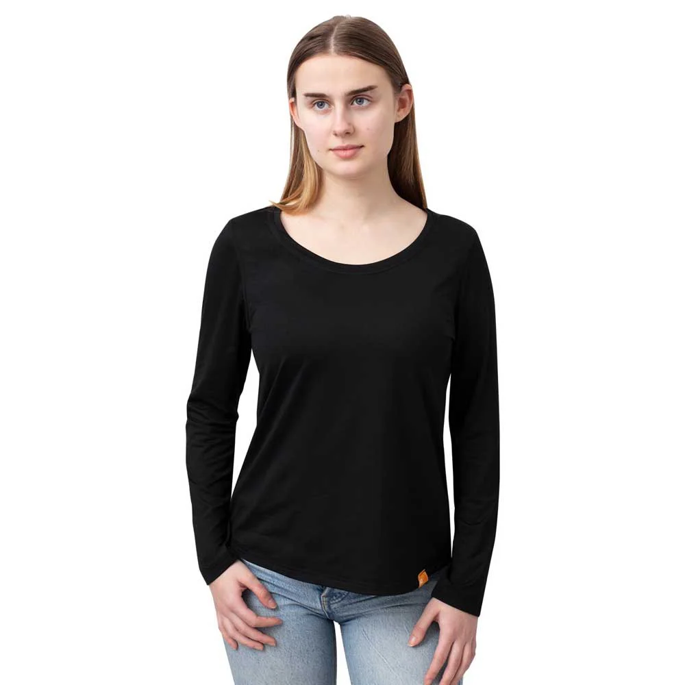 Summer, sun and sunshine. It´s really warm outside. This long sleeve shirt with a round neckline for women protects you from the sun. The UV shirt is not only ultra-light, but also perfect for the high summer thanks to its cooling effect. Try it out. Made in Europe from 86% polyamide and 14% elastane (Lycra). Washable at 40 degrees and non-iron.