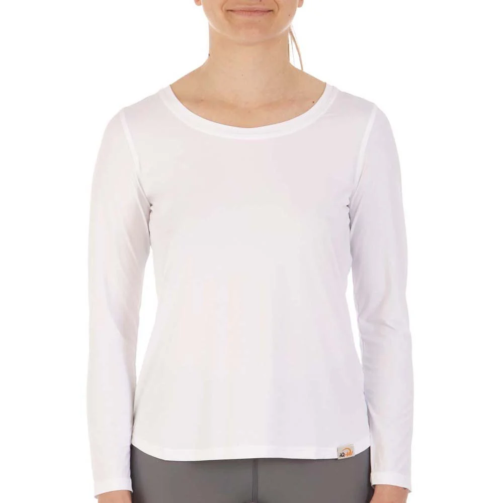 It´s over 30 degrees outside and you long to cool down? We can certainly help you out with the right clothing, because this long-sleeved shirt with round neckline for women is not only ultra-light, but also perfect for high summer thanks to its cooling effect. Made in Europe from 83% polyamide and 17% elastane (Lycra). Washable at 40 degrees and non-iron.