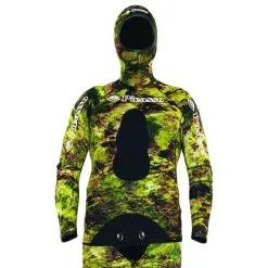 New camouflage wetsuit in green tons, selected to work well in every type of seaweed bottoms Top quality super stretchy YAMAMOTO Japanese neoprene nylon externally and open cell interior New ultra ergonomic cut Supratex ( anti-cut fabric ) reinforced knees Long padded chest protection Face, wrists and ankle ultra stretch water seals Jacket and pants can be bought separately and are available in 3mm, 5mm and 7mm High waist or Long john trousers